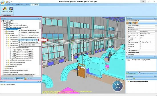 В файл MLT сохраняется информация о 3D-объектах и их атрибутах, данные об иерархиях «Комплекс» и «Разделы проекта», пользовательские выборки и классификаторы, а также файлы, связанные с 3D-объектами. Просмотр 3D-объектов происходит таким же образом, как в CADLib Модель и Архив: в программе можно показывать и скрывать объекты, связанные с определенными уровнями структуры.