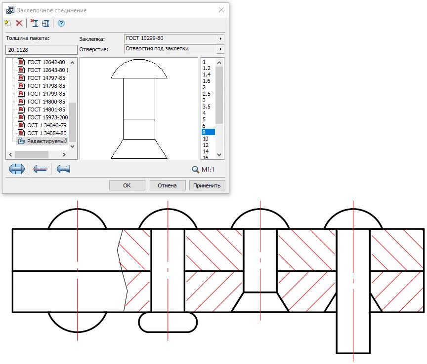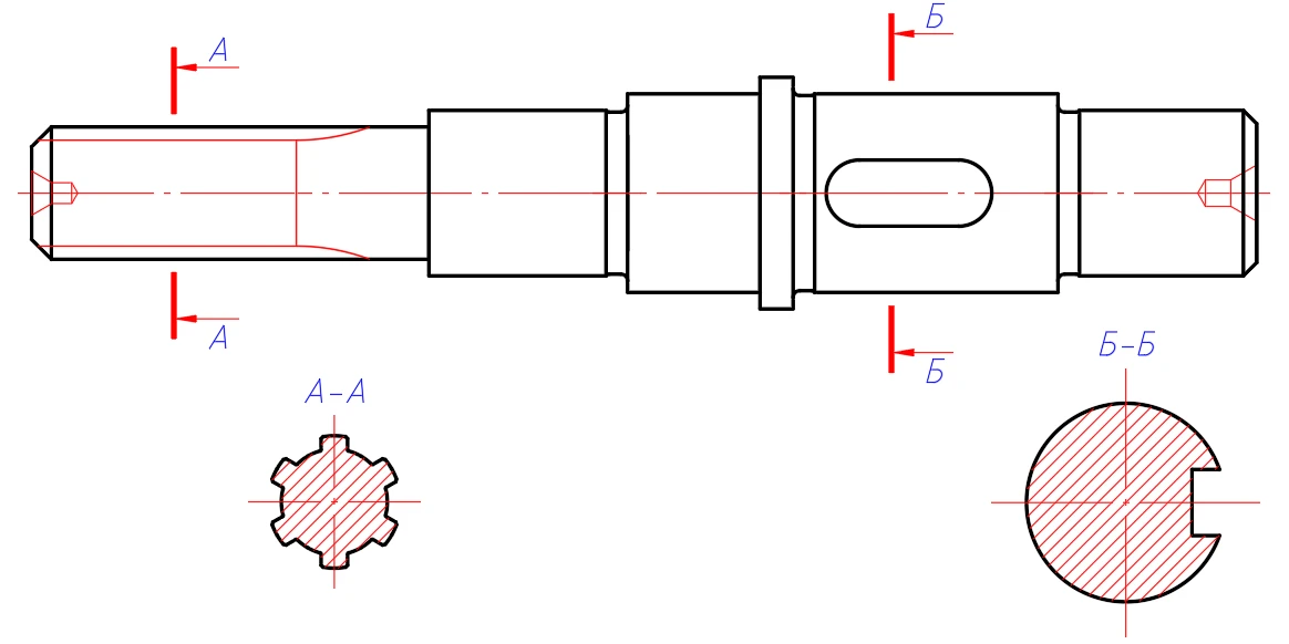Команда «Местный разрез» позволяет автоматически получать изображения элементов базы типа шпоночных пазов и центровых отверстий на валах. На деталях передач и фланцах этой командой можно делать полуразрезы. На днищах и обечайках с местными разрезами можно показывать их толщину.