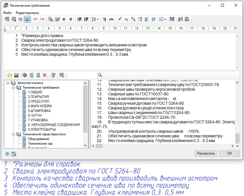 - Сделано сохранение параметров символов “Маркировка и клеймение”, чтобы если обозначение уже сделано, то следующее обозначение ставилось такое же;