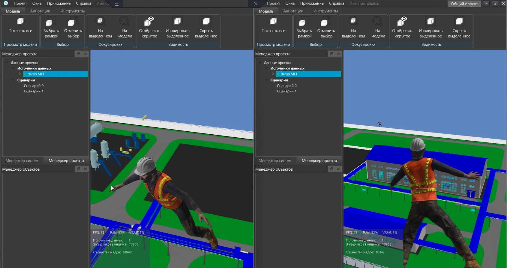 Программа фиксирует пересечения, которые происходят между элементами модели при выполнении сценария