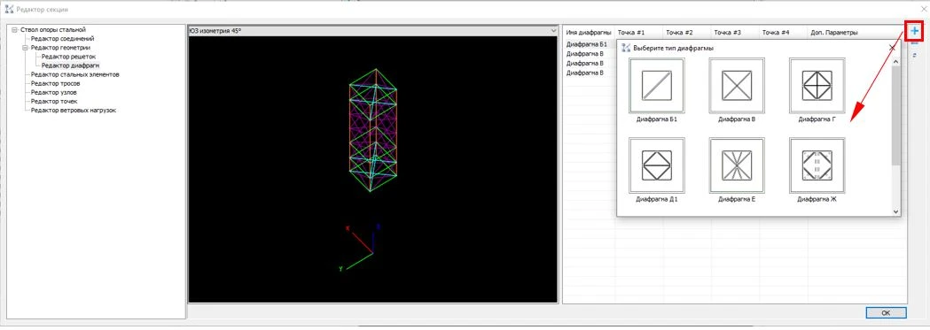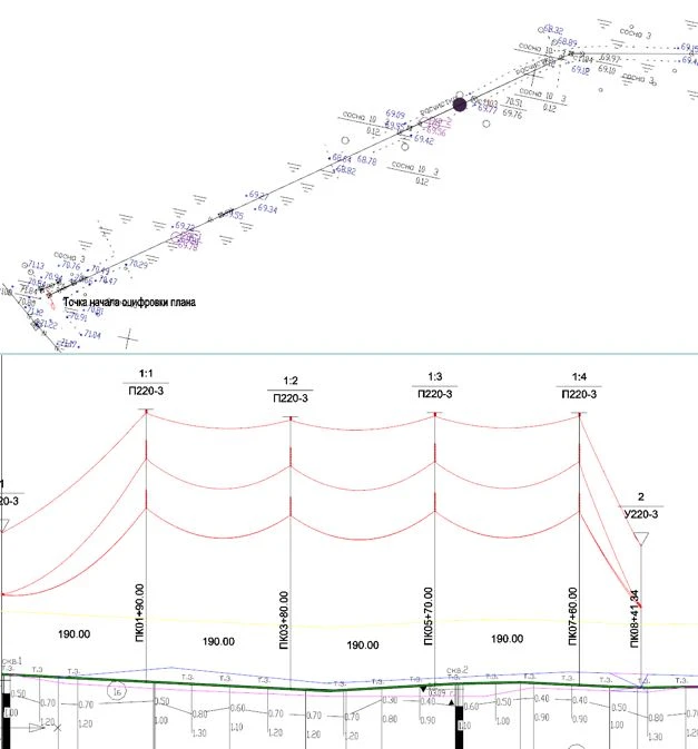 - Изменение положения анкерно-угловых и промежуточных опор на плане/профиле приводит к их смещению в 3D-модели и наоборот;