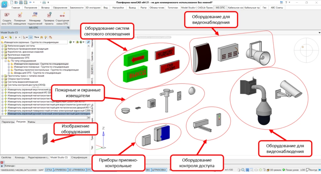 Программа предназначена для трехмерного проектирования систем охранно-пожарной сигнализации, СОУЭ, СКУД, систем видеонаблюдения.