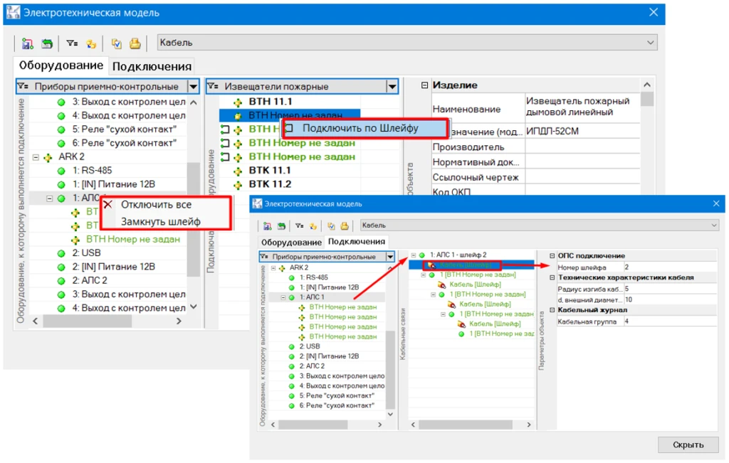 Доработан функционал Менеджера подключений по переносу кабелей из одного узла в другой. При переносе кабеля/шлейфа из одного узла в другой его параметры (кабельная группа, номер шлейфа) сохраняются