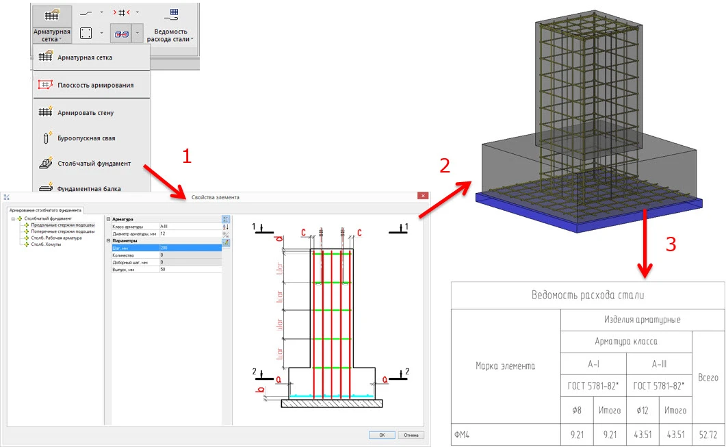 Реализована возможность добавления арматуры в сборку КМ