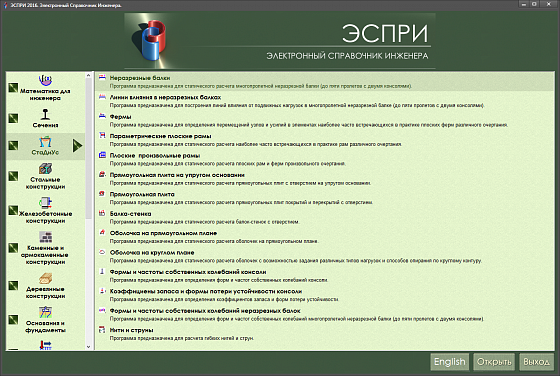ПК ЭСПРИ содержит программы, позволяющие выполнять компьютерные расчеты достаточно обширного класса частных задач проектного, инженерного и исследовательского направлений в строительстве.