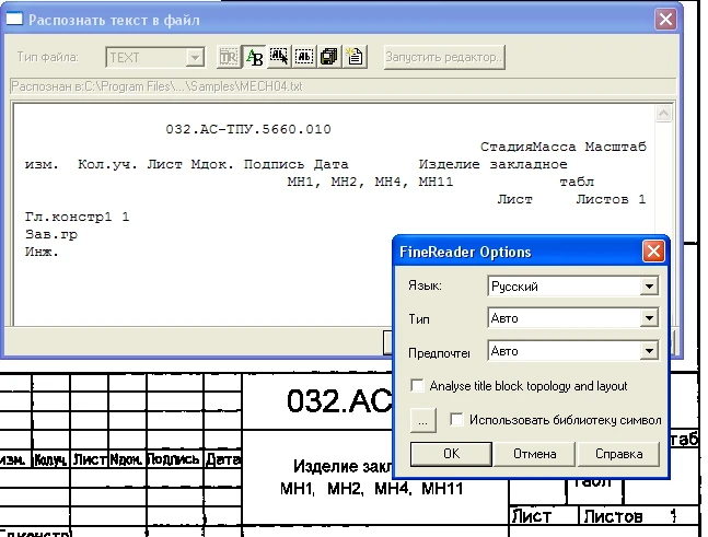 В состав RasterID 3.6 включен дополнительный модуль распознавания текста FineReader 9 от компании ABBYY.