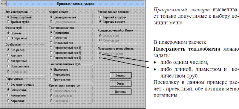 Подготовка исходных данных программным экспертом под типы теплообменника и расчета